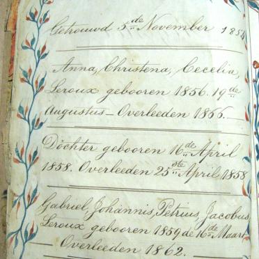 LEROUX Jacobus Johannis 1833-1883 en Christena Susara, gebore 1838, getroud 1855