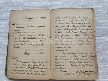 The notebook appears to be notes for a report to be submitted to a superior officer, which would explain the words crossed out and replaced by an alternative. The year would appear to be 1878, which ties in with the April dates in the first few pages.